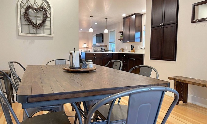 Welcome to Bales Cottage! This traditional but updated farmhouse is sure to please, with its open living concept and newly upgraded kitchen! This cottage has beautiful wood flooring throughout and plenty of natural light making for a spacious feeling home. The large living area features a stone-faced gas fireplace perfect for settling down after a long day of exploring. Both the sofa and loveseat in the living room recline for maximum comfort. Central heating and air conditioning provide optimal comfort during your stay.