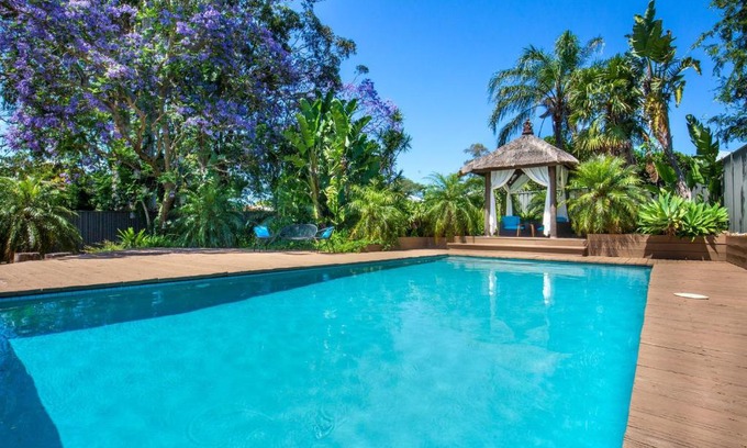 Bali Huts offers accommodations in Nowra, 24 miles from Fitzroy Falls. This vacation home offers air-conditioned accommodations with a balcony. With free Wifi, this 5-bedroom vacation home features a TV, a washing machine, and a fully equipped kitchen with a dishwasher and oven. Guests can take in the ambience of the surroundings from an outdoor dining area or keep warm by the fireplace on colder days. The accommodation is non-smoking. The nearest airport is Shellharbour Airport, 35 miles from the vacation home.