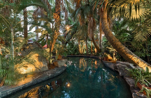 Experience this infamous tropical Balinese inspired Palm Beach home in Lake Worth! This vacation stay is in the historic section of Parrot Cove. Spacious, with four bedrooms, three and half bathrooms, a full kitchen, and two living rooms, this stay also has a resort themed backyard. Enjoy the beautiful lagoon-heated pool, and direct access to the Lake Worth Golf Course at the 18th- hole. To top it off, you'll have three separate outdoor areas on these beautiful grounds. The house is within a few steps of the Lake Worth Golf Beach Club serving breakfast, lunch & dinner options during your stay. You'll be a short two-minute drive to Lake Worth public beach, and a ten-minute drive to Palm Beach Island & the famous shopping destination, Worth Ave!
