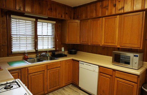 Your home away is stocked with plate, cups, mugs and a variety of pots and pans and paper napkins. Extra towels and sheets are in the bath in the main bed room. As you walk through the kitchen the washer-dryer are behind the curtain in the kitchen.
