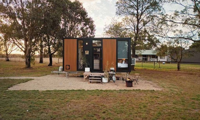 Ballarat Bliss by Tiny Away sits in the peaceful town of Cardigan, just 12 minutes away from the nearest accommodation in Ballarat, Victoria. The serene tiny home offers a chance to experience a peaceful country lifestyle, with views of farmers tending to cattle and sheep.