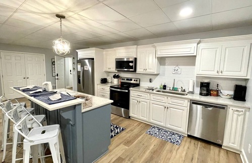 The Kitchen: The kitchen is fully stocked with all utensils and gadgets needed to make a meal. You will have a Keurig and a 12 cup coffee maker, as well as a starter set of coffee supplies