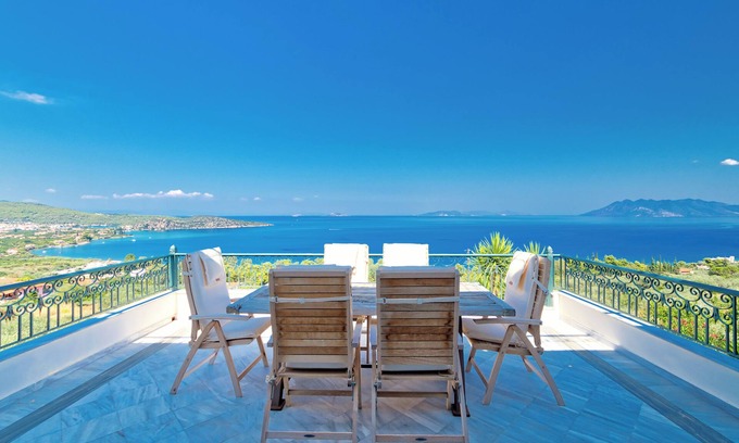 Welcome to our luxurious and stylish sanctuary complete with private pool and breathtaking panoramic views of the Saronic Gulf, Epidaurus, the islands of Aegina & Agistri, and the awe-inspiring volcano of Methana! A unique Villa consisting of two units with its own private pool, able to accommodate up to 10 persons in 260 sq.m. of combined space with wonderful balconies, large outdoor spaces and terrace on a 1300 sq.m. lot.