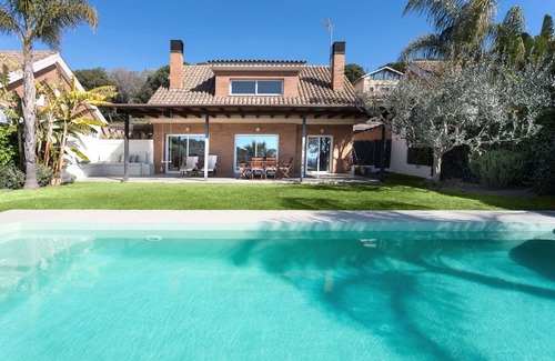 If you need to escape some days from your city or town, you can organize a getaway to Arenys de Mar, in this beautiful house in a very quiet residential area with a private pool and garden, and stunning views of the Mediterranean Sea.