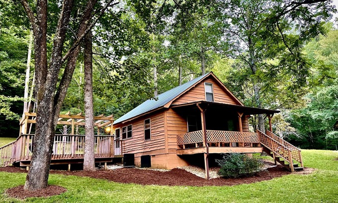 Banjo's Cabin is located in the foothills of Wilkes County, North Carolina. This two-bedroom abode is named after our dog who loves the freedom of the mountain woods and creek bottom that surround the area. He also enjoys playing with the many deer, rabbits and various wildlife that we hope you can enjoy too during your stay! The cabin is also conveniently located near historic downtown North Wilkesboro, Faithfest, Merlefest, Boone, and West Jefferson. As always, pets are welcome!