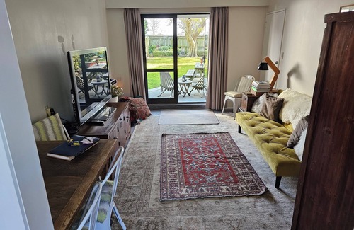 This luxury apartment is adjacent to the main house yet seperate with own entrance. Step through the door into a sanctuary which is private, fully furnished and set up for your comfort and relaxation. The bedroom is upstairs with living, kitchen and bathroom downstairs. Small outdoor patio area to enjoy the evening sunset. Tea and coffee are provided.