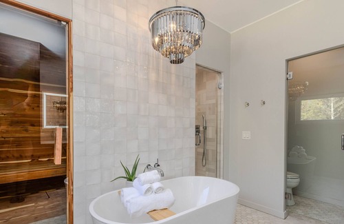 Cool off in the pool, relax in the jacuzzi, or head inside to pamper yourself in the master bath sauna.