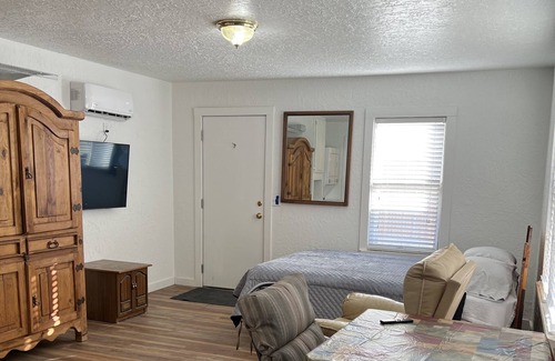 Quiet neighborhood away from downtown with barbeque stocked with charcoal and utensils. Covered Parking up to 2 cars can be used for shaded dining. Smart TV with High Speed Internet.