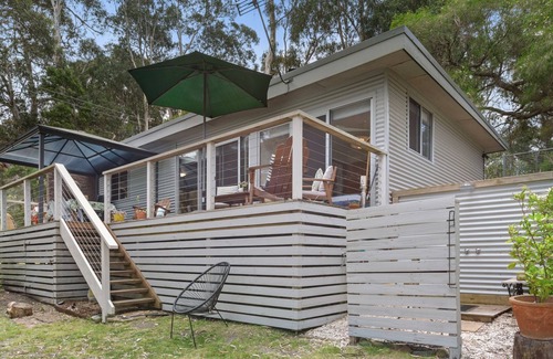 The property offers open plan kitchen, dining (table with 2 chairs + 3 kitchen bar stools) and living areas (Coonara wood heating & reverse cycle air con) with sliding doors that open up onto a wonderful deck area complete with BBQ, table and chairs, outdoor gas heater & outside shower. There are two bedrooms (1 x queen & 1 x double) one of which offers a safe for valuables, separate laundry and bathroom. There is also provision for two cars onsite.