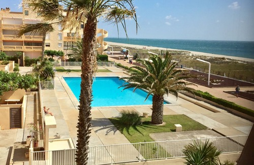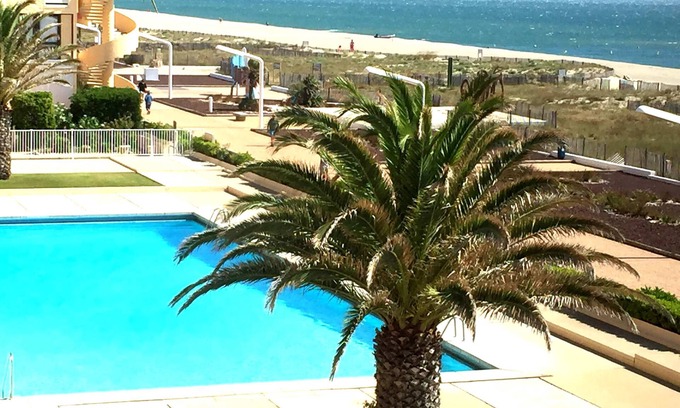 Great beach Barcarès. Private rented a T 2 the second floor with censer. In residence with pool 25 MX 10 M. open from June to September. Large terrace and panoramic sea front. Apartment renovated in April 2014 Salon, glossy lacquered equipped modern kitchen. Washing machine and dishwasher, microwave, American fridge. Large flat screen TV. Mobile air conditioning. Separate sleeping 2 sleeping bed and new mattress and bz 2 sleeping in the living room. Parquet floor, bathroom with shower. WC separated from the bathroom. Parking closed with barrier. Close to shops, bus stop .....