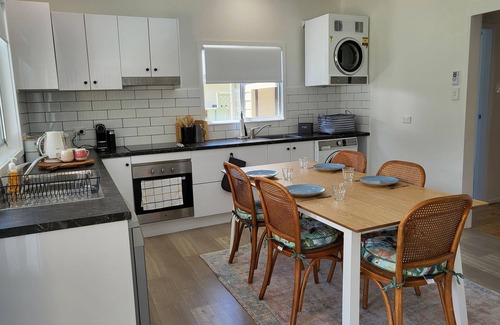 Renovated with near new appliances our beach cottage with Shoalhaven River at the end of the street, off leash dog areas and a 3 minute drive to the rolling surf Seven Mile Beach. Huge fully fenced level rear yard. Outdoor shower. Three bedrooms with ceiling fans, R/c air conditioning living, smart TV with complimentary wifi throughout. A well stocked kitchen, nespresso machine, dishwasher, washing machine and dryer. We now welcome your dogs (max 2) both inside and out but not on beds please. Free internet with study nook means suitable to work from home. All linen provided except BYO beach towels, cot linen and cot blankets. Outdoor furniture provided on the back deck overlooking the grassy yard where you will spend most of your time unwinding. Perfect for couples or families and their furry member. We provide a travel cot and can supply a highchair, just ask. Our cottage has off street parking in the tandem carport providing undercover entry to house. Driveway is shared with studio flat at rear. Getting around, the roads are mostly flat so walking and bike riding is ideal. Keypad entry means no more worrying about keys when you go out and about. You will receive a text with your PIN on arrival. You will have the entire house to yourself. I am available via messages or phone if urgent. Important House Rule for your pet: Human Guests can enjoy access to the full property however we do ask that your pet utilise the pet bedding provided or BYO..