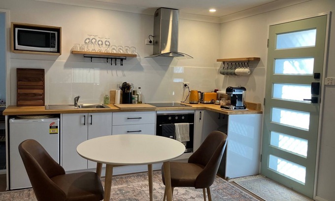 Relax in the sunny courtyard under the trees or hide yourself away in the cabin built for 2. Newly renovated with brand new appliances our self contained studio with Shoalhaven River at the end of the street and a 3 minute drive to the rolling surf Seven Mile Beach. Studio sleeps 2 . R/c air conditioning, TV, wifi, kitchen, bathroom and outdoor area. Want to bring more guests? Book Barefoot Cottage + Studio @ The Heads listing adjacent which sleeps 6 more and permits children & pets.