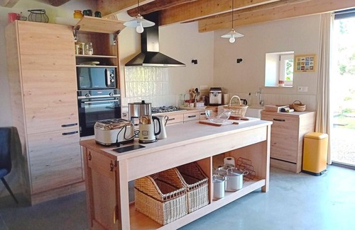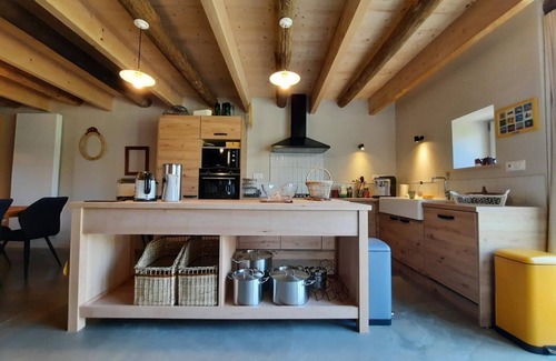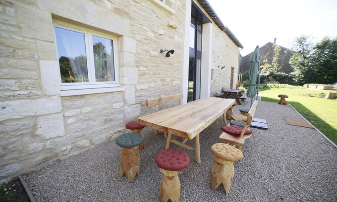Pretty stone house on 1200 m² of land with terrace equipped with solid wood furniture. Ground floor: large living room: lounge (TV, wood stove - 1st basket free - €30/additional basket), kitchen (microwave, freezer). 1 bedroom (1 bed 160 x 200 cm). Shower room. WC. Laundry room: washing machine, dryer. Upstairs: mezzanine with library corner, 1 bedroom (1 bed 160 x 200 cm, 2 single beds) with private shower room. 1 bedroom (1 bed 160 x 200 cm), 1 bedroom (1 bed 160 x 200 cm, 1 single bed). Bathroom. WC with water and dry toilet. Beds made (sheets provided). Towels and table linen provided. Cleaning included. Gas central heating. Parking for 4 to 6 cars. Secure bike shed for 11 bikes with water point and electrical outlets. Boules pitch and communal games 50 m away. Baby equipment (bed, chair, bath, dining table and mattress, bottle warmer). Access to the greenway 4.5 km, Sedan (Fort castle) 11 km, Lac de Bairon 16 km, Charleville-Mézières (30 km). GR14. Housed in the old family farm that has been completely renovated, the cottage is designed and managed in an eco-responsible way, while offering optimal comfort to its visitors. The owners wanted to create a warm and welcoming place. For your comfort, quality linen has been chosen. And just for you: a large ornamental garden, a vegetable garden where you can harvest seasonal fruits and vegetables, outdoor and indoor games (ping-pong, darts, skittles, boules, board games, etc.) and a wood stove that will be lit on request to create an even more cocooning atmosphere. This cottage has 4 bedrooms and 3 bathrooms with heated towel rails. The ground floor and terrace are fully accessible to people with reduced mobility.