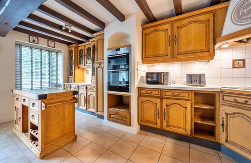 At the heart of the home and perfect for memorable gatherings, the cottage features a large, modern kitchen with an island and all modern amenities ideal for preparing meals together. The dining room provides a lovely setting for get-together meals. The lounge, equipped with comfortable sofa seating, a TV, and Wi-Fi, opens into a conservatory offering peaceful garden views. This extra space is perfect for multi-generational families, offering a quiet spot to relax and enjoy the outdoor scenery.