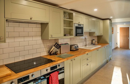 This spacious and stylish barn conversion, located in the picturesque village of Little Rissington, accommodates up to eight guests. The open-plan living area is ideal for socializing, featuring a smart TV and bi-fold doors that open up to a private garden complete with outdoor seating and a hot tub. The well-equipped kitchen comes with an electric oven, hob, microwave, fridge, freezer, and dishwasher, perfect for a self-catered stay. Additionally, a utility room with a washing machine and tumble dryer ensures convenience, while the property is also pet-friendly, making it a great choice for families and groups with furry companions. Nestled in the heart of the Cotswolds, this property offers an ideal base for exploring the nearby attractions. The famous Bourton-on-the-Water, known as the "Venice of the Cotswolds," and Bibury with its iconic Arlington Row, are just a short drive away. The area is renowned for its scenic walking and cycling trails, perfect for outdoor enthusiasts. Families will enjoy visiting Birdland Park and Gardens, while the surrounding hills and countryside offer breathtaking views. The nearest train station is easily accessible, and the property is well-connected by road to nearby towns and villages. The barn features four spacious bedrooms, including two king-size beds, one double, and a twin room, ensuring comfort and flexibility for large families or groups. There are two bathrooms: an en-suite with a cubicle shower and a family bathroom with a bath and shower cubicle. For added convenience, the property includes all essential amenities such as bed linen, towels, and internet access.