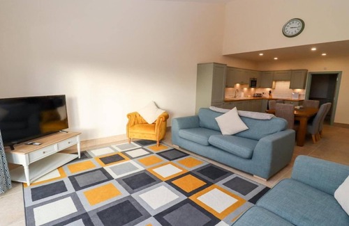 Located in the charming village of Little Rissington in the Cotswolds, this stylish barn conversion offers a comfortable and contemporary retreat perfect for families, friends, or couples. With a mix of modern amenities and scenic surroundings, it’s an ideal base for exploring the beauty of the Cotswolds. The open-plan living area is designed for relaxation and convenience, featuring a smart TV, Wi-Fi, and bi-fold doors that open to a private garden. The fully equipped kitchen includes an electric oven, hob, microwave, fridge, freezer, dishwasher, and a thoughtful welcome pack. A dining area provides a space for shared meals, while a utility room with a washing machine and tumble dryer ensures added convenience. The ground-floor master bedroom has a king-size bed and an en-suite with a walk-in shower. Upstairs, you’ll find a double room and a twin room with zip-and-link beds, making it a versatile choice for families or groups. Two sleek bathrooms ensure comfort and privacy for all guests. The barn features a private garden with a hot tub, outdoor seating, and scenic views—perfect for unwinding after a day of exploration. The location is ideal for discovering nearby attractions such as Bourton-on-the-Water, known as the "Venice of the Cotswolds," and Bibury, famous for its iconic Arlington Row. Enjoy walking trails, cycling routes, and family-friendly attractions like Birdland Park and Gardens.