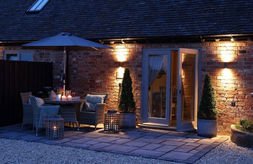Escape to a dreamy hideaway, where romance and rustic charm intertwine against the backdrop of stunning Warwickshire countryside. This newly converted barn offers the perfect sanctuary for couples looking to unwind and reconnect. Overlooking a picturesque duck pond, every aspect of this haven has been designed to create a sense of luxury and ease, from its enchanting original features like beamed ceilings to contemporary comforts, including underfloor heating and a sumptuous king-sized bed. With your four-legged friend by your side, this dog-friendly retreat encapsulates the bliss of country living. Inside, you’ll find a beautifully styled dual-aspect living area that invites relaxation and intimacy. Adorned with country-chic furnishings, soft Farrow & Ball color palettes, and abundant natural light, it’s the ideal space for cozy evenings spent together. Whip up gourmet meals in the fully equipped kitchen, complete with modern appliances, before retreating to your elegant galleried bedroom nestled in the eaves. Here, the luxurious king-sized bed and adjoining en-suite bathroom—featuring both a walk-in shower and a traditional cast-iron bathtub—offer the ultimate indulgence for a tranquil night’s rest. Step outside through the elegant French doors onto your private terrace, designed with both comfort and style in mind. This enclosed space is perfect for lazy sunny afternoons or evening barbecues under the stars, all while keeping your pet safe and secure. Surrounded by beautiful gardens and breathtaking landscapes, this romantic escape is just a stone’s throw away from charming Cotswold villages and historic attractions, making it an ideal base for exploring this exquisite part of England. Here, you and your partner can embark on a journey of leisure and love, all in a setting that feels like your own little piece of paradise.