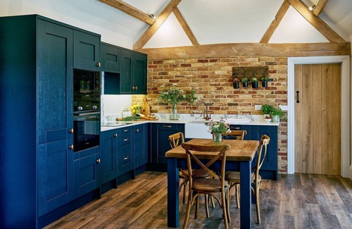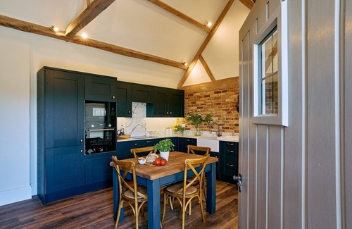 Escape to a luxurious barn conversion that perfectly blends rural charm with modern sophistication, ideal for a memorable getaway. Nestled just outside the quaint hamlet of Walton near Stratford-upon-Avon, this stunning retreat offers a private wood-fired hot tub, allowing you to unwind in ultimate relaxation while surrounded by the scenic beauty of Warwickshire's countryside. Accommodating two guests, this thoughtfully designed open-plan space features an elegantly equipped kitchen with striking midnight blue cabinetry and high-quality kitchenware. Enjoy meals at the generously sized dining table, or open the double doors to the patio for al fresco dining under the stars. The inviting living area, adorned with plush sofas and cozy decor, beckons you to curl up with a good book after a day of exploration. The sanctuary-like bedroom boasts a luxurious king-size pocket-sprung bed beneath a vaulted ceiling that showcases original beams, while the beautifully appointed bathroom invites indulgence with a traditional cast-iron slipper bath and complimentary premium bath products. With two traditional bicycles at your disposal, you can explore the picturesque country lanes at your leisure. Guests enjoy complimentary access to the nearby Walton Hall Hotel's pool and leisure facilities, with additional discounts on spa treatments just a short stroll away. The enchanting towns and villages of the Cotswolds are within easy reach, offering an array of independent shops and charming cafes. Whether you indulge in local attractions, explore historical sites, or simply soak in the tranquility, this luxurious barn retreat promises a perfect escape into the heart of the Cotswolds.