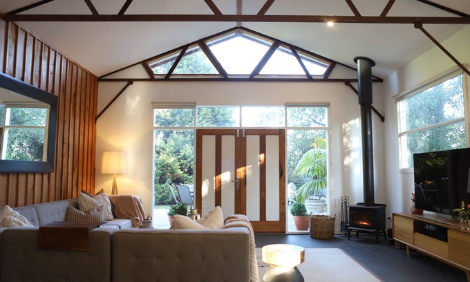 The charm of a barn with all the comforts of a home & only a stone throw from the Mornington Peninsula wineries & beaches. "The Barn" is unique & charming, cozy & private. Soaring ceilings, picturesque windows, cozy wood fire, private courtyard with BBQ, firepit & private parking. The large bedroom has a super comfy king-size bed, ensuite with large shower, fully equipped kitchen with Smeg appliances & laundry facilities & split heating/air-conditioning. "The Barn" has all you need, and more.