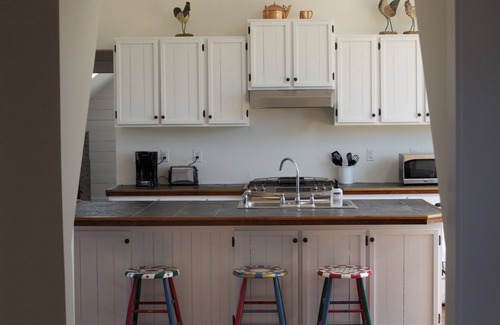 The Grain Shed is a completely restored 150-year old grain shed with a bedroom loft, kitchen and living area.