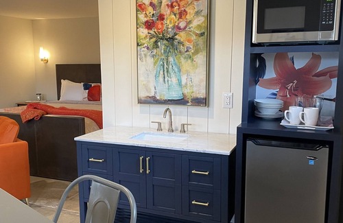 - Spacious Accommodations: Enjoy a comfortable stay in a well-appointed studio featuring a king-size bed and polished concrete floors that provide an inviting atmosphere for you and your guests.