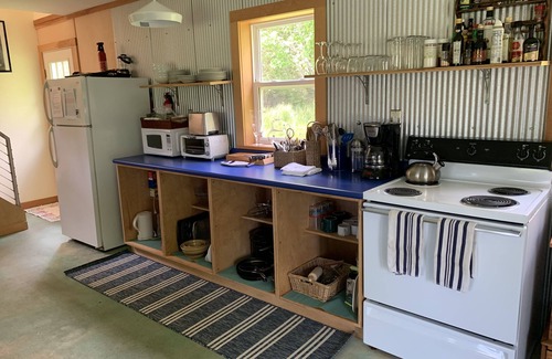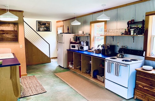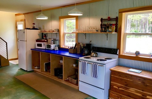 The Greenhouse is a contemporary open barn style space. Huge kitchen, living room and dining area downstairs. French doors open onto a lush lawn, gorgeous garden, sun-filled patio and expansive backyard with plenty of space for kids ro run and play. Upstairs, you'll find a large master bedroom suite, bathroom with sparkling white subway tiles and comfortable light-filled twin bedroom. Washer/dryer. Dishwasher. Cable TV. Free internet access and WIFI provided. Toasty warm on cool nights, and cool on warm days. Away from it all, yet close to all: town, hikes, lakes, beaches, waterfront. Perfect for summer, spring or fall vacations. If your dates are not available for The Greenhouse, please consider our companion guest quarters - The Little House - property #125032 on Vrbo.