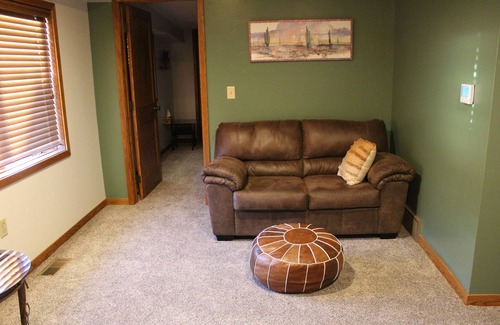 Get the total experience in this western boho barn suite overlooking the arena. Walk through the barn to visit the horses and potentially watch them being ridden in the arena below. Private suite sits above the tack room and has amazing sunset and pasture views. The suite features a full kitchen, queen bedroom, full bathroom, and living room with dvds and games. There's an additional queen air mattress that can be set up. Great location just outside of Norfolk. Ask about a possible riding lesson while you are here for the full experience.