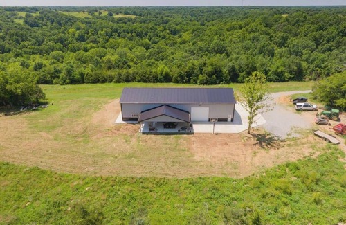 Discover the "Bourbon Trail Barndo," your serene escape in central Kentucky. This spacious haven combines rustic charm with modern comfort, offering 2 primary bedrooms, a loft with 6 beds, two kitchens, and endless entertainment options. Enjoy ping pong, basketball, corn hole, campfires, or relax in a hammock, all without a neighbor in sight. Want more adventure? Rent side by sides and ATVs upon request. Welcome to paradise in Kentucky, where tranquility meets exhilaration.
