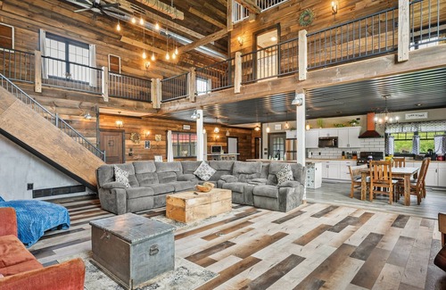 Barndo with a Beach! Golf Sim, Slide, HotTub/Sauna, Volleyball, Frolf, Sleeps 24 | House in Merrimac