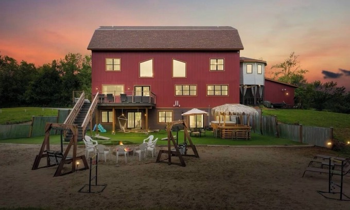 - Barndo with a Beach! Golf Sim, Slide, HotTub/Sauna, Volleyball, Frolf, Sleeps 24