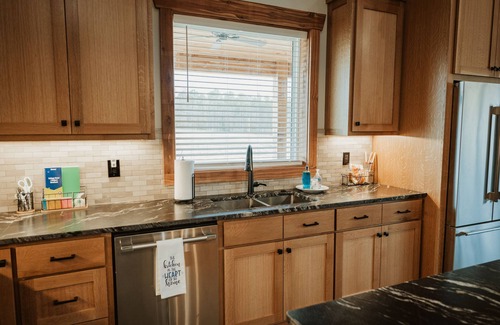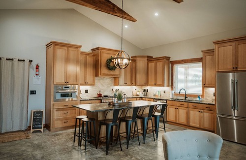 Greene Forrest Acres is a unique and cozy barndominium that sits on 158 acres. Come enjoy the fancy kitchen, cozy bedrooms, and the peaceful outdoors. GFA is a great option if you are coming in town for one of the two wedding venues close by, or if you are local and need some time away from the hustle and bustle of life. Bring your dog and enjoy a weekend in the country with your family. Take a walk on the nature trails, have a bonfire, and breath in the fresh air!