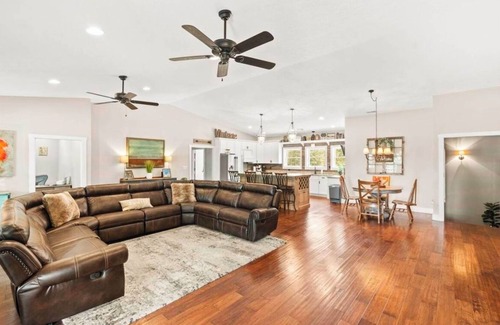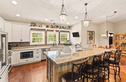 Barndominium! Pool, HotTub, Slide, Mini B-Ball Court/Nerf Arena, Theater, 2 Bars has 7 Bedrooms , 3 Bathrooms, and max occupancy of 30 people. The minimum rental for this property is 1 nights, but this can change depending on the season you plan on staying. Previous guests have given good rated it, and VRBO labeled it a top-rated House because of the excellent services rendered by the owner or manager of this House, and has consistently provided great experiences for their guests. Most families or guests that use it recommend it to their friends and some of them are repeat guests. House has a friendly neighborhood, and the North Terre Haute has interesting places to visit. If you want to learn more about the House in North Terre Haute, such as places to visit and things to do nearby, you can check below to learn more.