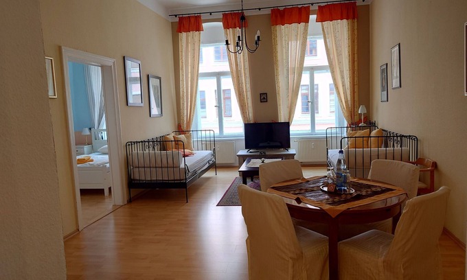 Baroque house apartment 1st floor with French bed - Baroque house apartment has 2 Bedrooms , 1 Bathroom, and max occupancy of 4 people. The minimum rental for this property is 1 nights, but this can change depending on the season you plan on staying. Previous guests have given good rated it, and VRBO labeled it a top-rated Apartment because of the excellent services rendered by the owner or manager of this Apartment, and has consistently provided great experiences for their guests. Most families or guests that use it recommend it to their friends and some of them are repeat guests. Apartment has a friendly neighborhood, and the Altstadt has interesting places to visit. If you want to learn more about the Apartment in Altstadt, such as places to visit and things to do nearby, you can check below to learn more.