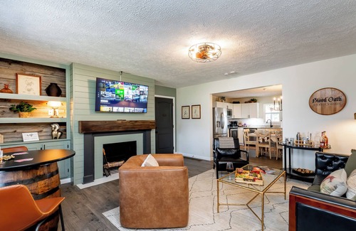 Barrel Top Bourbon House: Bourbon Trail, Pool, Hot Tub, Speakeasy, Mini-Golf! is located in Keene. Barrel Top Bourbon House: Bourbon Trail, Pool, Hot Tub, Speakeasy, Mini-Golf! provides accommodation, featuring Fireplace/Heating, Barbecue/Outdoor Cooking, Air Conditioner, among other amenities. This House features Fireplace/Heating, Barbecue/Outdoor Cooking, Air Conditioner, to make your stay a comfortable one.