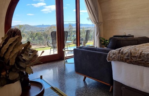 Barrel View Luxury Cabins features air-conditioned accommodations in Ballandean. This chalet offers barbecue facilities. There's a picnic area and guests can make use of free Wifi, free private parking, and an electric vehicle charging station. All units come with a patio with mountain views, a fully equipped kitchenette with a microwave and a toaster, and a private bathroom with shower. A fridge is also available, as well as a coffee machine and a kettle. At the chalet complex, every unit is equipped with bed linen and towels. Guests at the chalet will be able to enjoy activities in and around Ballandean, like hiking.