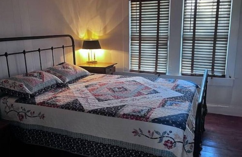 Once a tiny farmhouse, it was enlarged and remodeled several years ago. 2 bedrooms with queen beds and ceiling fans. Bathroom with shower. Vaulted beaded living room ceiling with recessed lighting. Original hardwood floors in living room and bedrooms. Original, very rustic closets in bedrooms. Lots of windows. Tile floors throughout the kitchen and office area. Large kitchen with island stove and oven, dishwasher, coffee, coffee pot, microwave, toaster, blender, all cooking utensils, pots, pans, dishes and silverware. Wide bar separating kitchen from living room serves as a dining table with 5 barstools. Electric fireplace heater in living room. WiFi and Fire stick tv. Large desk and workspace off the kitchen. Welcome to country life!