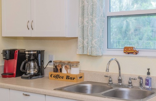 The kitchen is a culinary haven, equipped with everything you need to unleash your inner chef. Whether you're whipping up a meal from scratch or reheating leftovers, you'll find all the tools you need. For coffee enthusiasts, you’ll find a Keurig and a drip coffee maker with coffee, sugar and creamer.