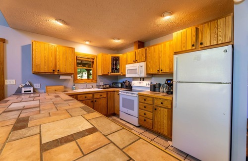 The kitchen comes fully stocked with anything you would need to make comfort food, including a grill, crockpot, waffle maker, Insta-Pot, electric griddle, coffee maker (dual use for drip coffee and single serving), and more.