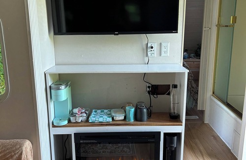 The RV kitchen includes propane stove, microwave, double sink (camper size), camper sized fridge with freezer, dishes and cutlery. Dish soap and cloths are provided along with paper towel. Bath towels are provided with washcloths and a hand towel, please bring your own beach towels. There is a drying rack for them outside. Large barbecue with tools is provided as well as a firepit. Please bring your own firewood - it is available for purchase just down the road. You will have full access to the lower 3 acres or so of our property - which includes treed areas and open grassy area for play. Board games are in the RV for rainy days, as well as a DVD player and a variety of DVD’s. There is room for a playpen if you have a young person - we don’t yet have one to provide, waiting to see if there is much demand. No high chair yet either - also waiting to see if needed.