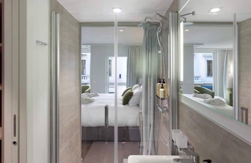 This modern studio has free Wi-Fi, a king-size bed with pocket-spring mattress, and a fully equipped kitchen with dishwasher and Nespresso coffee machine. The comfortable seating area includes a coffee table, a reading light and a 102 cm high-definition connected TV. The bathroom has a rain shower with shower head and heated towel rail. The bay windows are fitted with blackout blinds.