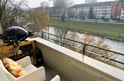The apartment has a nice terrace with a BBQ and beautiful river view, one bedroom that features a queen bed, a living room with a sofa bed for 2 additional guests, a dining table and a working area, and a well-equipped kitchen. A large flat-screen TV is available with Netflix, Prime Video, etc. The accommodation is non-smoking. Free WiFi is available throughout the property.