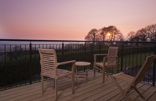 This fabulous Somerset property set in the Quantock Hills, with a panoramic view as far as Exmoor, will take your breath away. Superb quality throughout includes three luxurious double bedrooms with super-king beds that can also be made up as twins, three spacious sparkling wet-rooms and a really large open plan living area with the most stunning full-width balcony; below this a sheltered south-facing patio wraps around two sides of the lodge. There is direct access through our fields to the Aisholt Common, the highest point on the Quantock Hills, an Area of Outstanding Natural Beauty.
