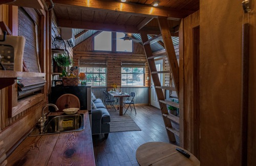 Enjoy everything about the property: kayaks, fishing poles, grilling picnic area with a Webber charcoal grill, fire pit,etc. The river is great place to spend your time! The Inside of the tiny house living area is a great place to watch a movie or football game. It has a very comfortable down filled couch and a 42 inch Smart TV which includes Youtube TV, which is the newest(best) streaming service that provides 70 of the best cable channels, and is easy to navigate. When watching movies, the smart tv allows you to log in to your Netflix or Amazon Prime account. We have Wifi internet with lots of power(300 mpbs!!). Big Daddy's grill is just a few blocks down the road. Big Daddy's is one of the areas most popular casual dinning restaurants located on the river.