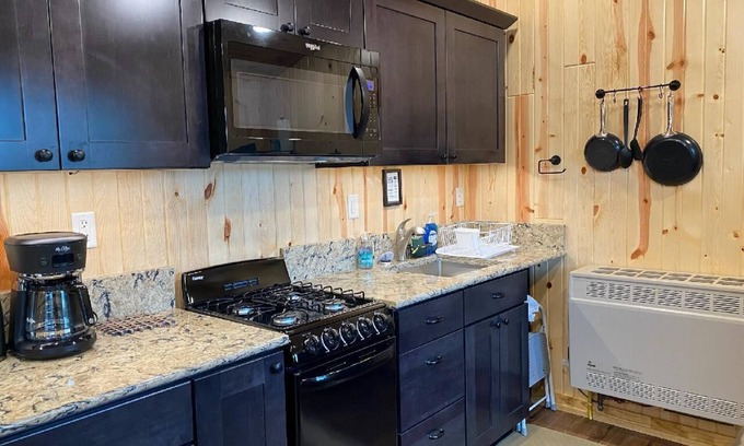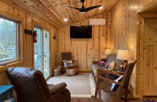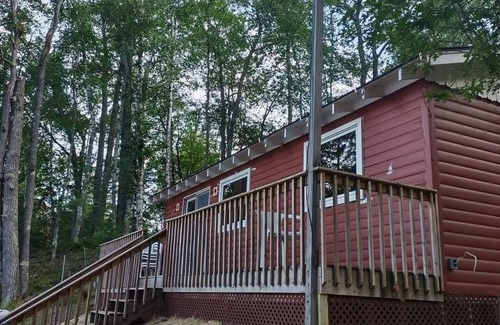 600SF 2BR, 1 bathroom cabin right on shore. Fully outfitted kitchenette. Glass door and picture windows overlook lake. Wifi, Roku TV, Netflix, and AC.