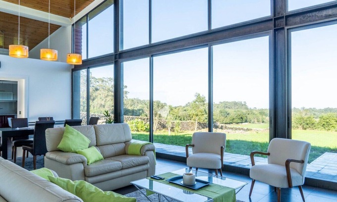Batalha Golf Villa is a house located in a central area of the island of São Miguel, on the North Coast of the island, just 15 minutes from João Paulo II airport. This accommodation has a privileged view of the golf course on one side and a sea view on the other. This Villa with modern architecture, with refined decoration, has 3 bedrooms, 3 bathrooms, air conditioning throughout the accommodation, private parking and a 6 thousand square meter garden, with jacuzzi and barbecue and is the ideal place for your dream vacation in São Miguel.