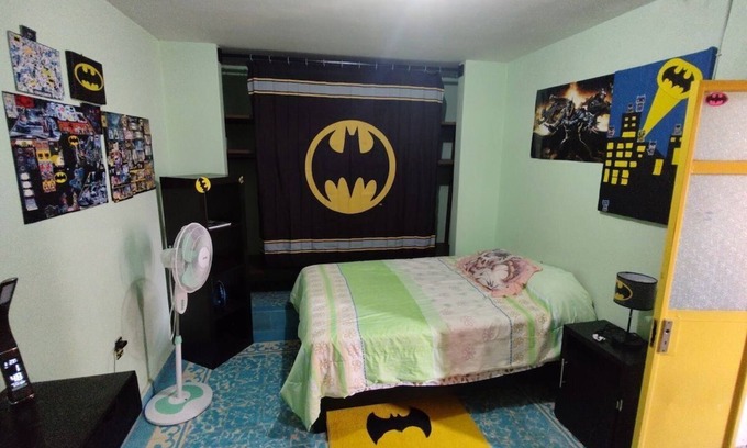 Autonomous entrance. It is located on the first floor of the building. It has 2 double beds and a bathroom with hot water inside the same room, Wi-Fi and Batman theme. WE DO NOT HAVE PARKING OR LUGGAGE STORAGE SERVICE.