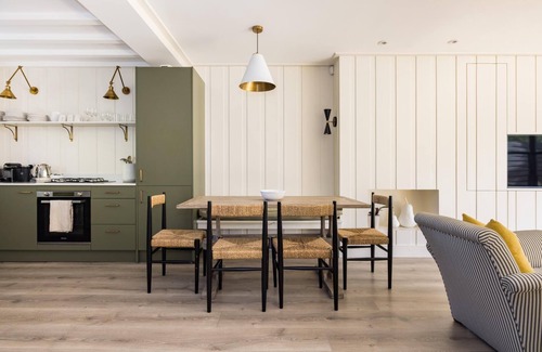 Two floors and 3 bedrooms are united by considered design, with fresh whites set against rustic textiles and statement lighting to ramp up the wow factor.