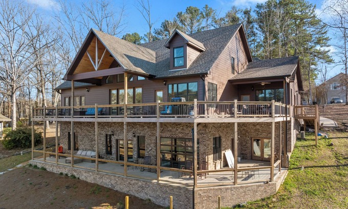 Discover the ultimate retreat in this stunning seven-bedroom, 4.5-bath luxury home, perfectly perched along the serene shores of Smith Lake. Spanning three spacious stories, this property combines elegance with comfort, offering breathtaking views and an array of upscale amenities that cater to every guest.