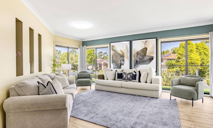 Designed with impressive attention to light and shadow, this 5 bedroom house provides a comfortable and modern living experience. 3 mins drive to M1 Highway, 6 mins drive to Carindale Westfield, ideal for families up to 10 people, with modern amenities and a welcoming atmosphere.