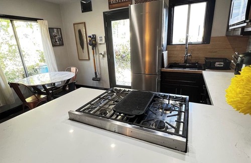 This sweet bungalow features a fresh and sleek vibe throughout, ideal to host your family getaway for an extended stay!